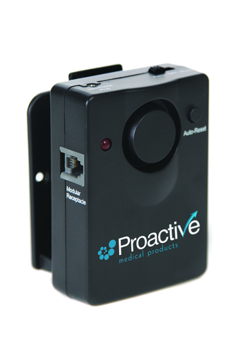 The monitor activates when patient lifts off of the pressure pad * This monitor reduces false alarms by automatically silencing the alarm when pressure is reapplied to the sensor pad as the patient settles back onto the sensor pad or when the belt is re-attached * It is compatible with most manufacturer’s alarm sensor pads as well as buckle and velcro seatbelt sensor attachments * Automatically resets when pressure is reapplied to the sensor pad * Low and high volume option offers the caregiver the option to adjust the alarm to the required volume * Meets JCAHO guidelines * Alarm is always in the on position making it impossible for staff to forget to turn the alarm on and preventing the alarm from being accidentally turned off * Can be used with most companies bed and chair sensor pads as well as both velcro and buckle seatbelt sensors and with Proactive’s floor sensor pads * Mounting bracket easily attaches to practically all wheelchairs and beds * Standard color is black * Operates on one 9V battery (included) * 1 Year warranty