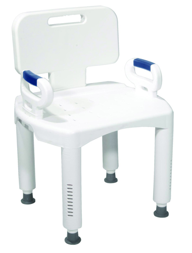 Easy tool free height adjustment * Enhanced comfort seat fits all shapes and sizes * Tool free removable back legs and arms * Lightweight design has large stable legs with soft non-slip feet * 350 lb. weight capacity * Seat height 20.5 * Retail packaged