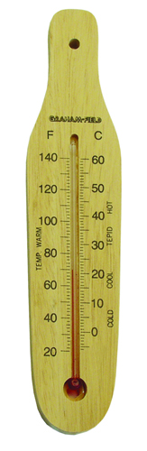 Glass thermometer with dual graduated scale fully recessed in 9 long smoothly finished wooden housing * Measures both Fahrenheit (20� to 140�F) and Centigrade (0� to 60�C)