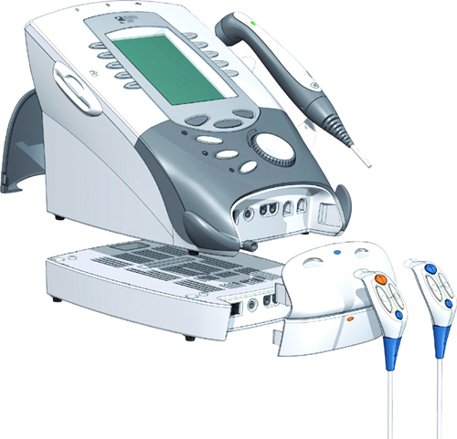 2-Channel Combination * Easy-to-add modularity allows the addition of two additional channels of electrotherapy light therapy or a battery module * High contrast 5 (13 cm) FSTN LCD monochromatic user interface * Two independent electrotherapy channels expandable to four independent channels * Multiple waveform electrotherapy-six clinical waveforms: Interferential Premodulated High Volt Russian Symmetrical Biphasic and Microcurrent * Documentation of treatment data with Patient Data Cards * User defined protocols for your specific needs * Dual frequency ultrasound at 1 or 3.3 MHz * Pulsed or continous duty cycles (10% 20% 50% & 100%) * 4 Ergonomically designed soundhead applicator sizes: 1 cm2 2 cm2 5 cm2 & 10 cm2 * Watertight soundheads for use in underwater therapy * Optional Operator Remotes allow treatment stop start and pause as well as change in amplitude at any time during a treatment session * Each remote is color-coded for designation between channels *